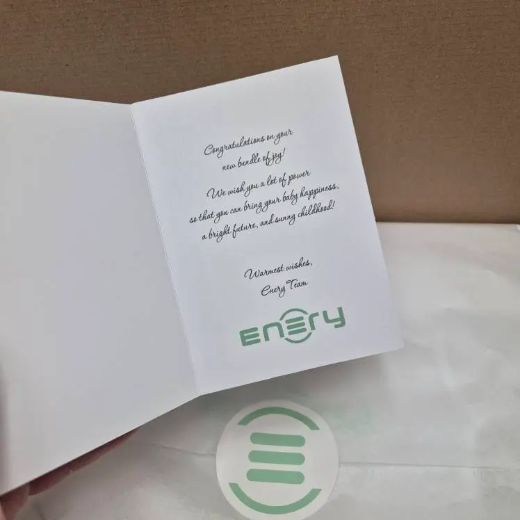 Лого на Вашата компания и текст по желание ще присъства и на вътрешната част на поздравителната картичка, както и на опаковката на кутията.