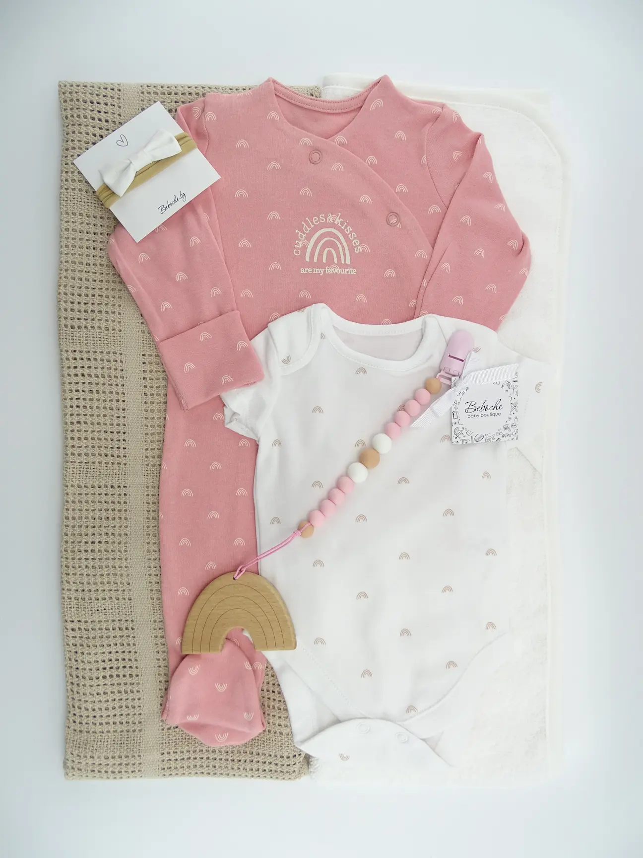 Beboche е онлайн магазин за подаръци за новородени, предлагащ най-великолепните бебешки аксесоари и принадлежности. Всяка кутия съдържа основни продукти, от които всяка майка има нужда за новороденото си бебе. Внимателно сме подбрали редица стилни и уникални продукти. Бебешки гифтбокс с десен на дъги.