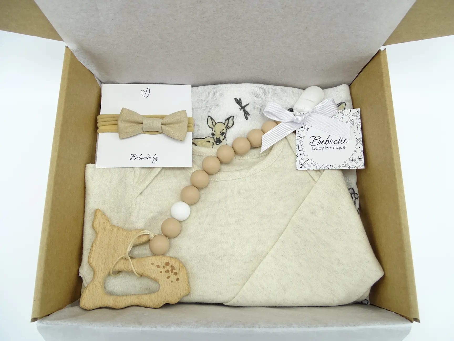 Beboche е онлайн магазин за подаръци за новородени, предлагащ най-великолепните бебешки аксесоари и принадлежности. Всяка кутия съдържа основни продукти, от които всяка майка има нужда за новороденото си бебе. Внимателно сме подбрали редица стилни и уникални продукти. Бебешки гифтбокс с пелена на сърнички.